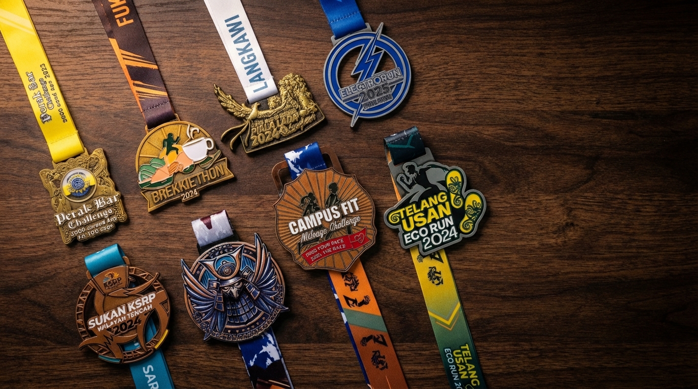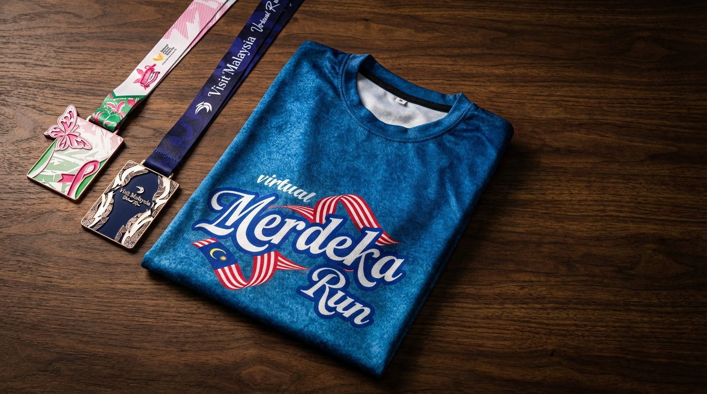 Medal, lanyard dan baju event yang direka khas untuk memberikan pengalaman yang lebih profesional dan bermakna kepada setiap peserta.