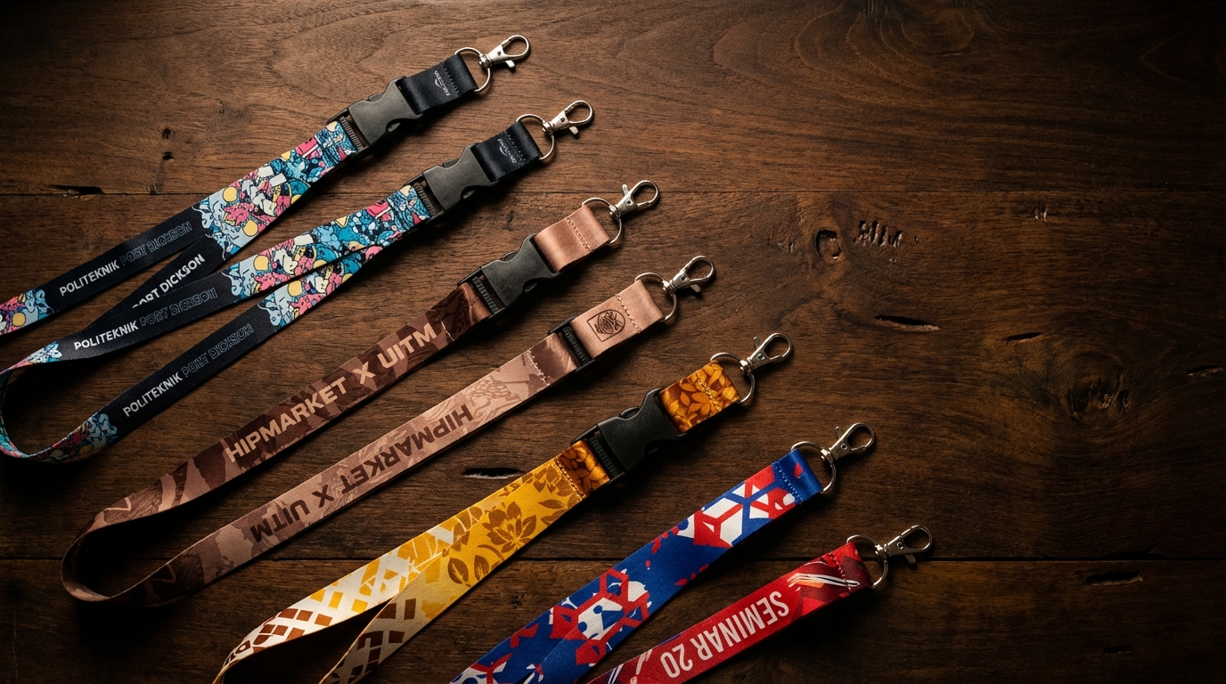 Custom lanyard dengan pelbagai pilihan saiz, strong silver hook yang tahan lasak serta pilihan safety buckle untuk penggunaan yang lebih selesa.